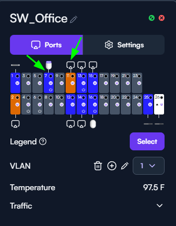 The good news is you can see this plainly in the controller UI. Note in the screenshot above, we see blue ports, orange ports, and white ports. If we mouse over the tooltip for the Legend, we see what each color means: