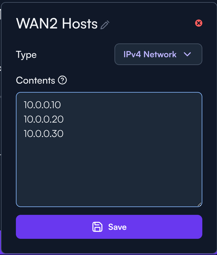 Si desea enviar tráfico desde una subred completa (típicamente una VLAN completa) en lugar de un solo host, simplemente ingrese la subred, por ejemplo 192.168.1.0/24, en su lugar.